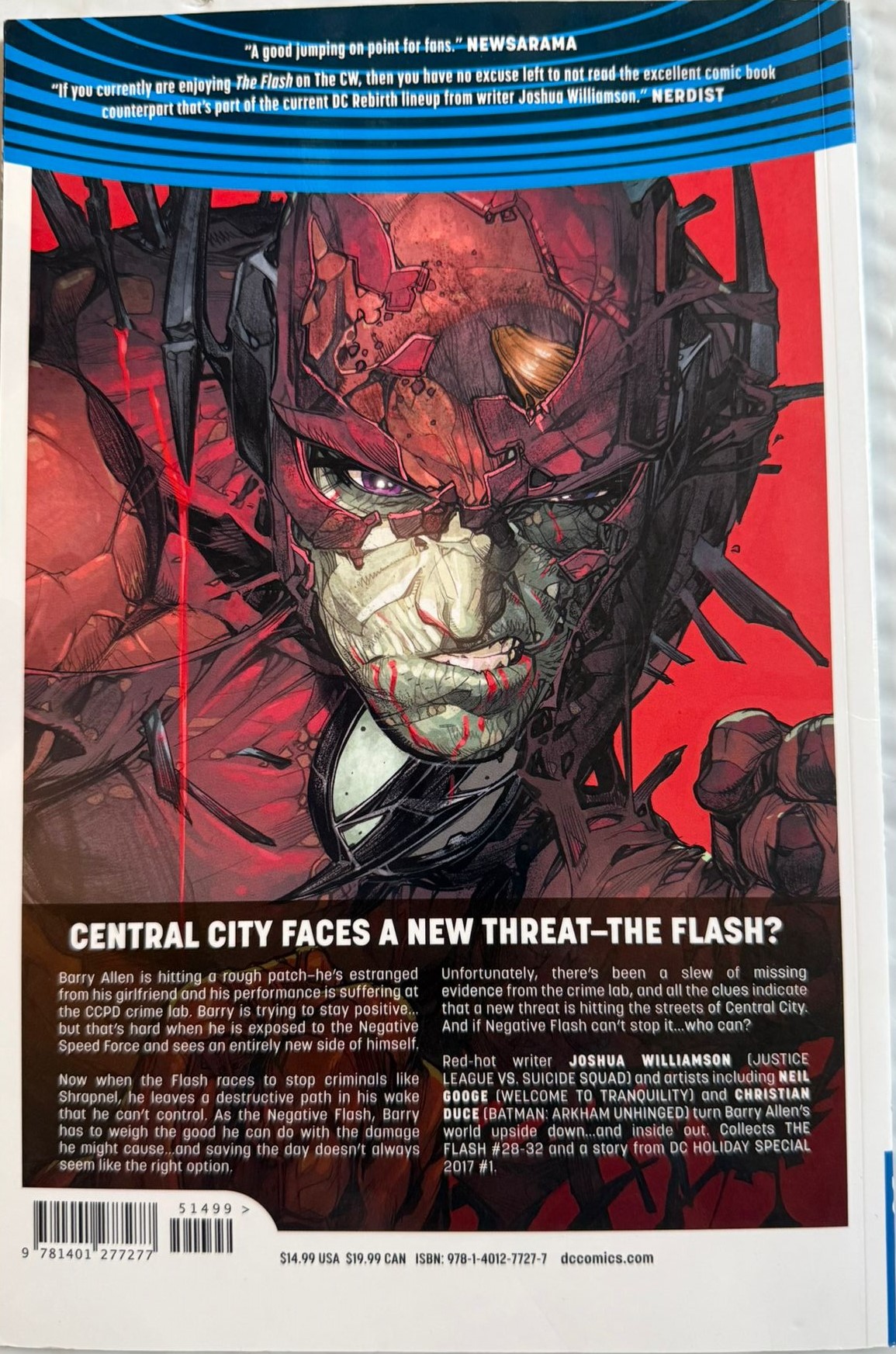 Hot writer Joshua Williamson (Justice League vs. Suicide Squad, Deathstroke) and artists Neil Googe (Welcome To Tranquility) and Christian Duce (Batman Arkham Unhinged) vividly bring Barry Allens upside-down world and the dark side of the Speed Force to life in this volume. It collects THE FLASH #28-32 and a story from DC HOLIDAY SPECIAL #1.