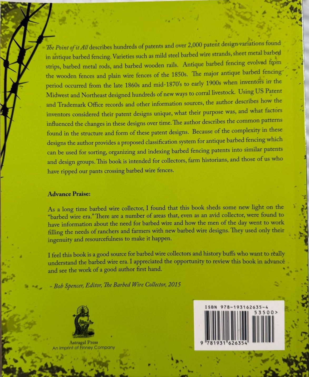 In summary, The Point of It All is an invaluable resource for anyone seeking in-depth knowledge about antique barbed wire structures. With 352 of analysis, illustrations, and classification methods, it is both a comprehensive study and a practical reference for serious readers and collectors alike.