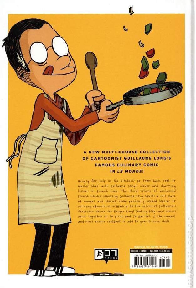 This volume serves up a full plate of clever and captivating French culinary cartoons, recipes, and anecdotes. From perfectly cooked lobster and kitchen escapades in Madrid to forbidden Burger King cravings and food blogging mishaps, Long’s comics and witty commentary make this third volume a must-have for your cookbook shelf.